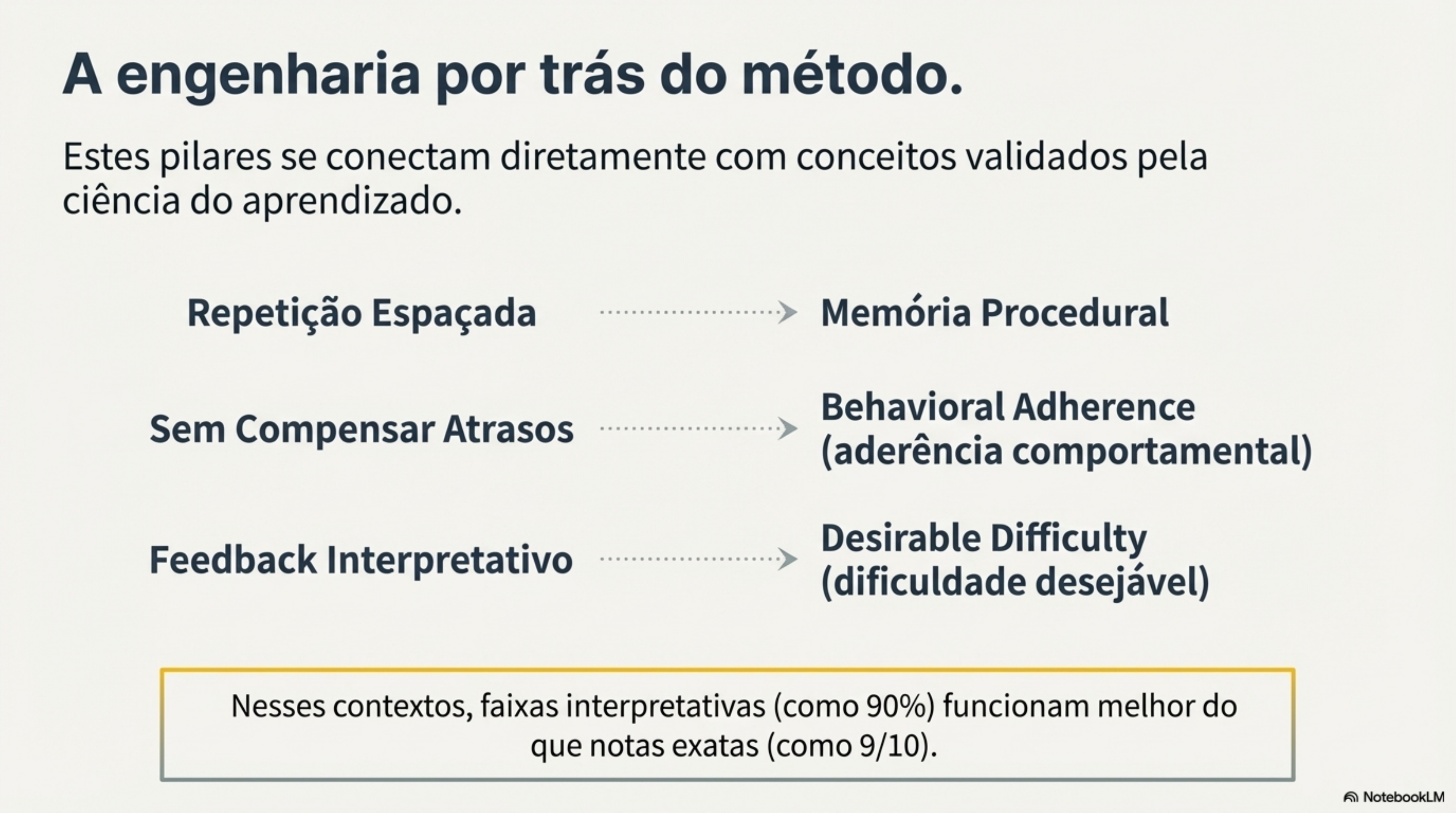 - Memória: o cérebro precisa de tempo e reexposição para consolidar o que foi treinado.